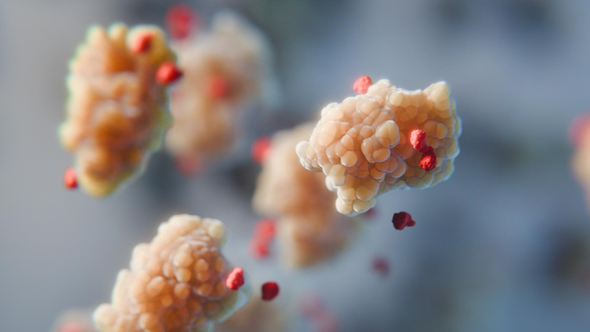 Small amino acids (red) ‘screen’ attraction of proteins (yellow) to other molecules. 2025 SuNMIL EPFL CC BY SA