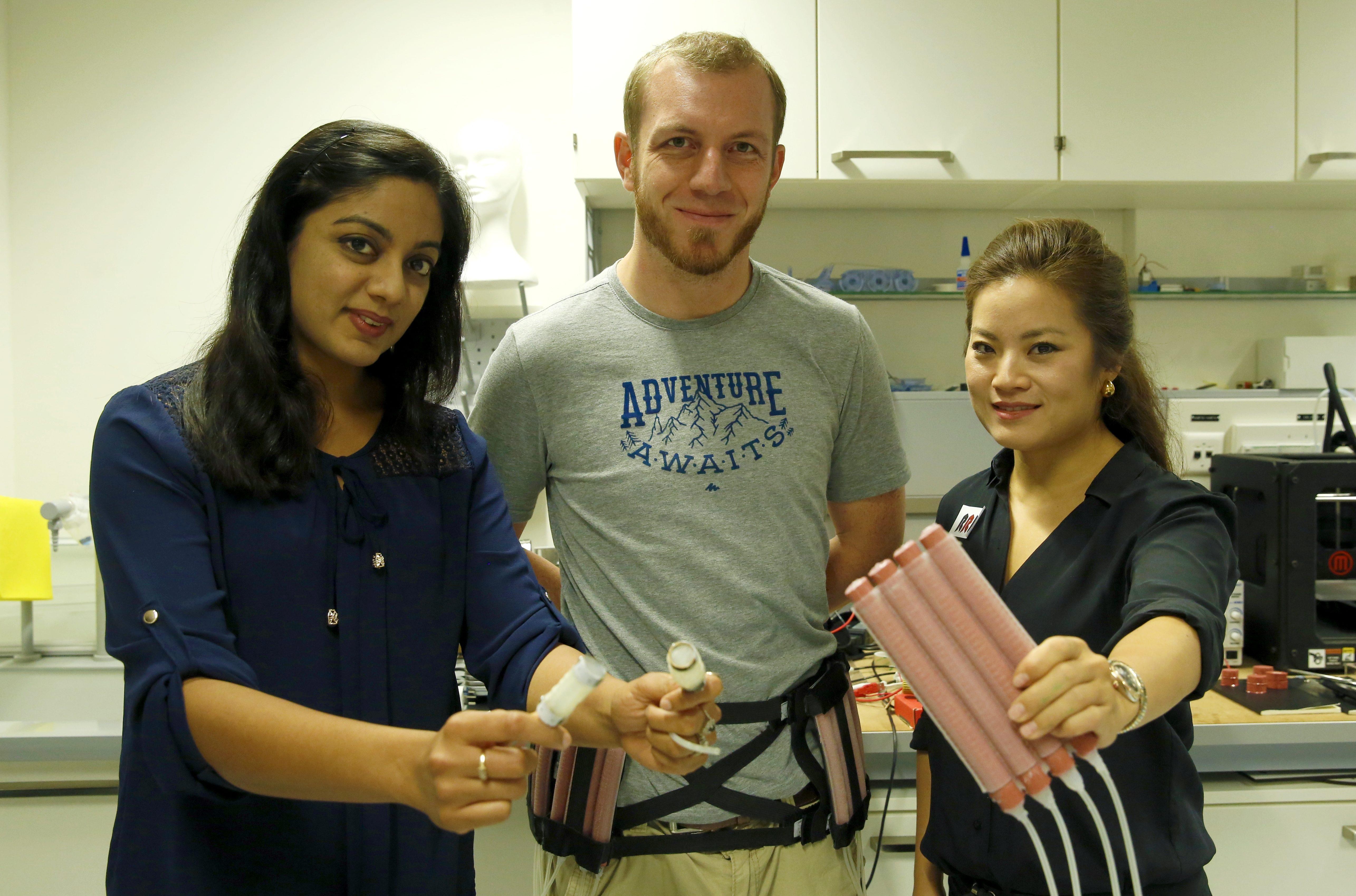 Gunjan Agarwal, Matthew Robertson and Jamie Paik © Marc Delachaux /2016 EPFL