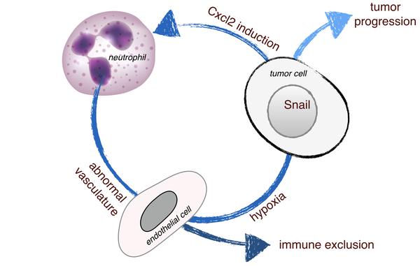 The researchers found that Snail in turn increased the secretion of the protein Cxcl2, augmenting neutrophil infiltration. This creates a positive loop that accelerates the progression of the cancer.